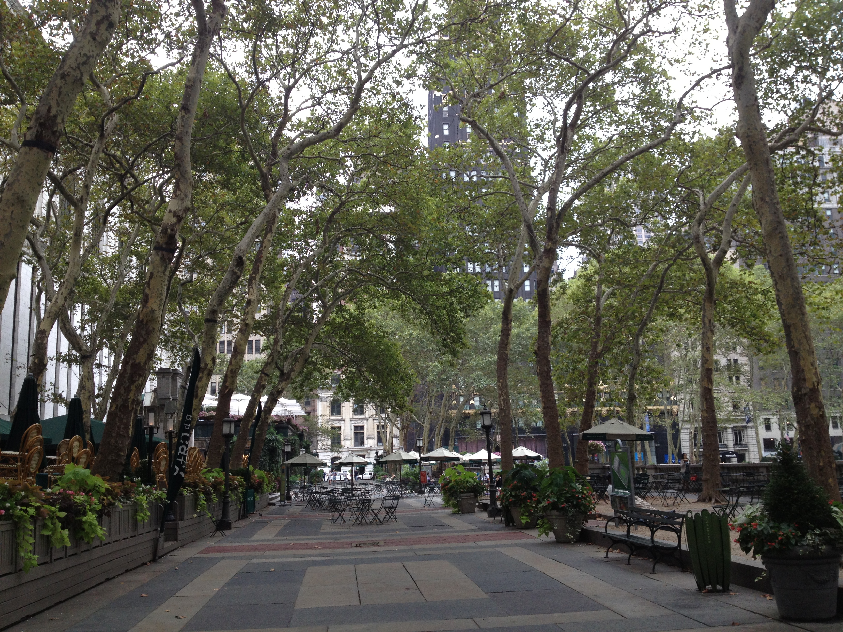 From there, I wandered to Bryant Park, which sits just in front of the Public Library. At 9am, it was relatively quiet, with a few people sitting on the many tables eating breakfast, enjoying a bit of greenery amongst the skyscrapers.