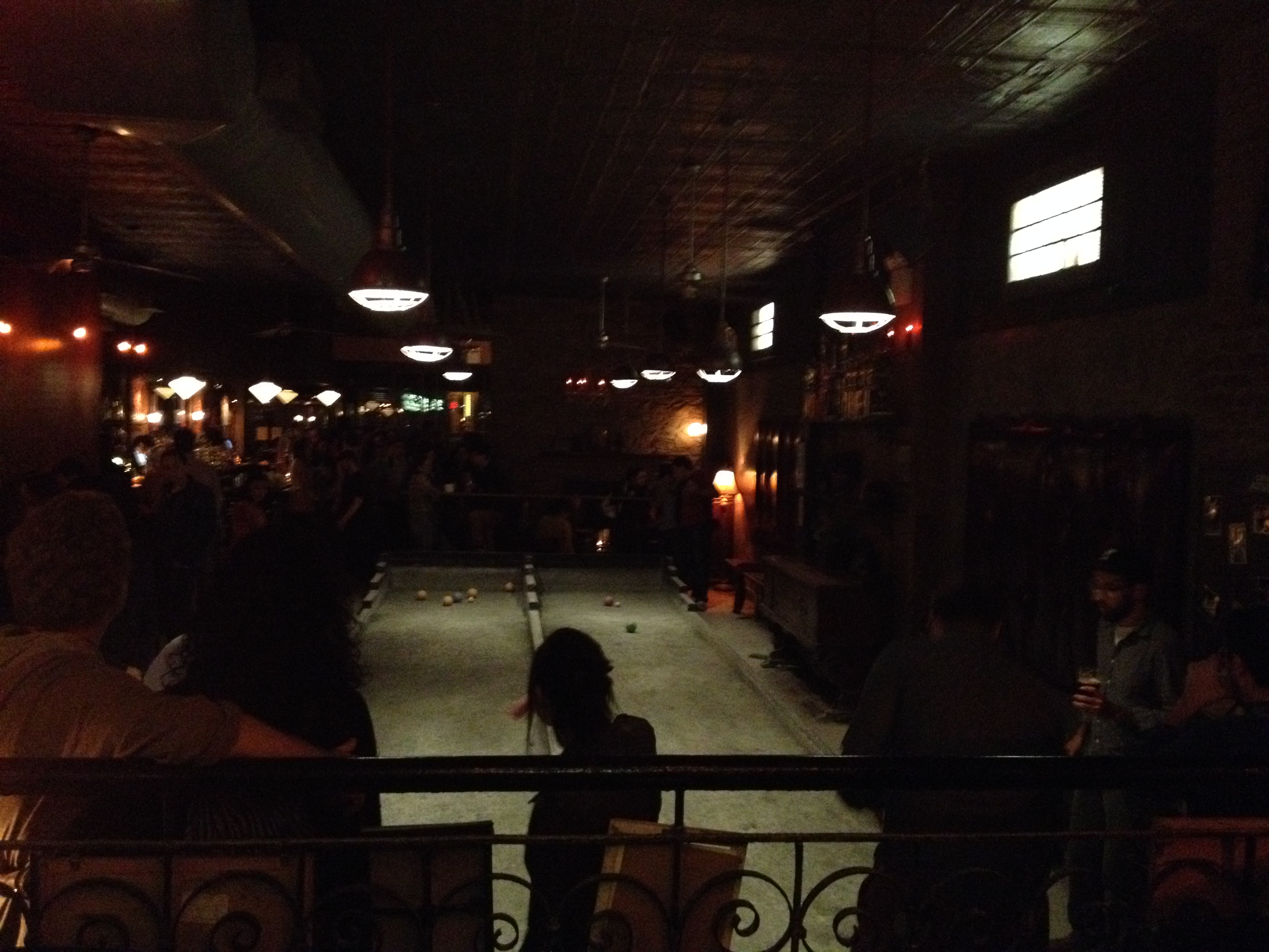 We then went on to some birthday drinks at a really cool bar called Union Hall (http://www.unionhallny.com), which has a couple of lanes where you can play boule- like what old men play in France but still it was a good focal point for the bar and I felt like it had a more relaxed atmosphere than some of the Manhattan bars. This is a pretty bad photo but you get the idea…