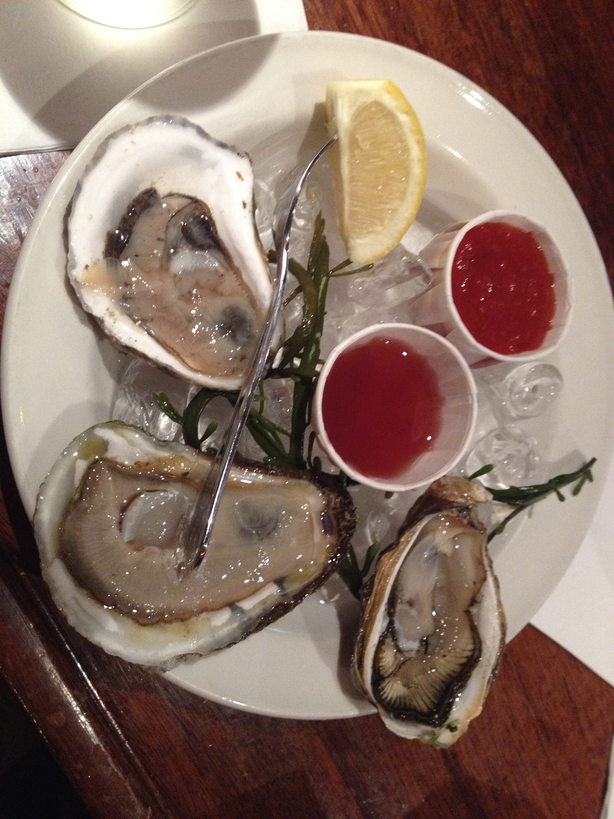 We met for dinner on Monday evening, starting off at the Grand Central Oyster Bar, which first opened in 1913. I pass it most days on my way off the train from work and had put it on my list to try. It’s an amazing space with a huge selection of oysters and a great wine list. I am a fairly recent convert to oysters but I definitely enjoyed eating a selection from the surrounding states in such a famous setting.