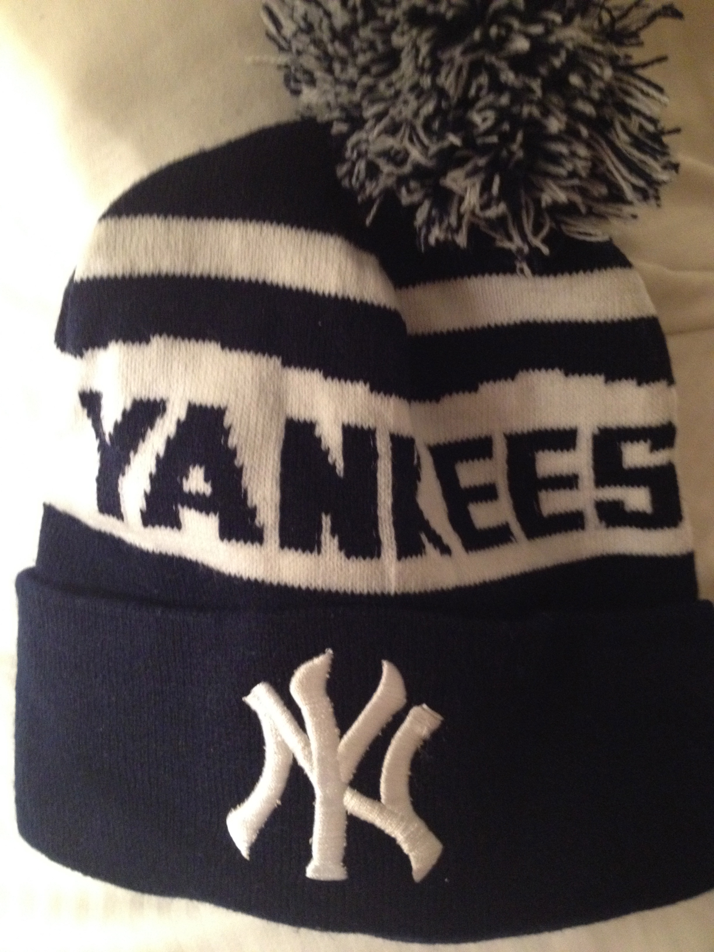 On Thursday, I was encouraged / forced to leave work at 5pm… the reason for this? I had tickets for the Yankees game that evening, and according to everyone on my desk, I had to be there by the time the game started to make the most of the experience. I began my trek to the Bronx, where the Yankee stadium is located, and, arriving at 6.30pm, was lucky enough to get this beautiful piece of headgear for free! I’m a true New Yorker now.